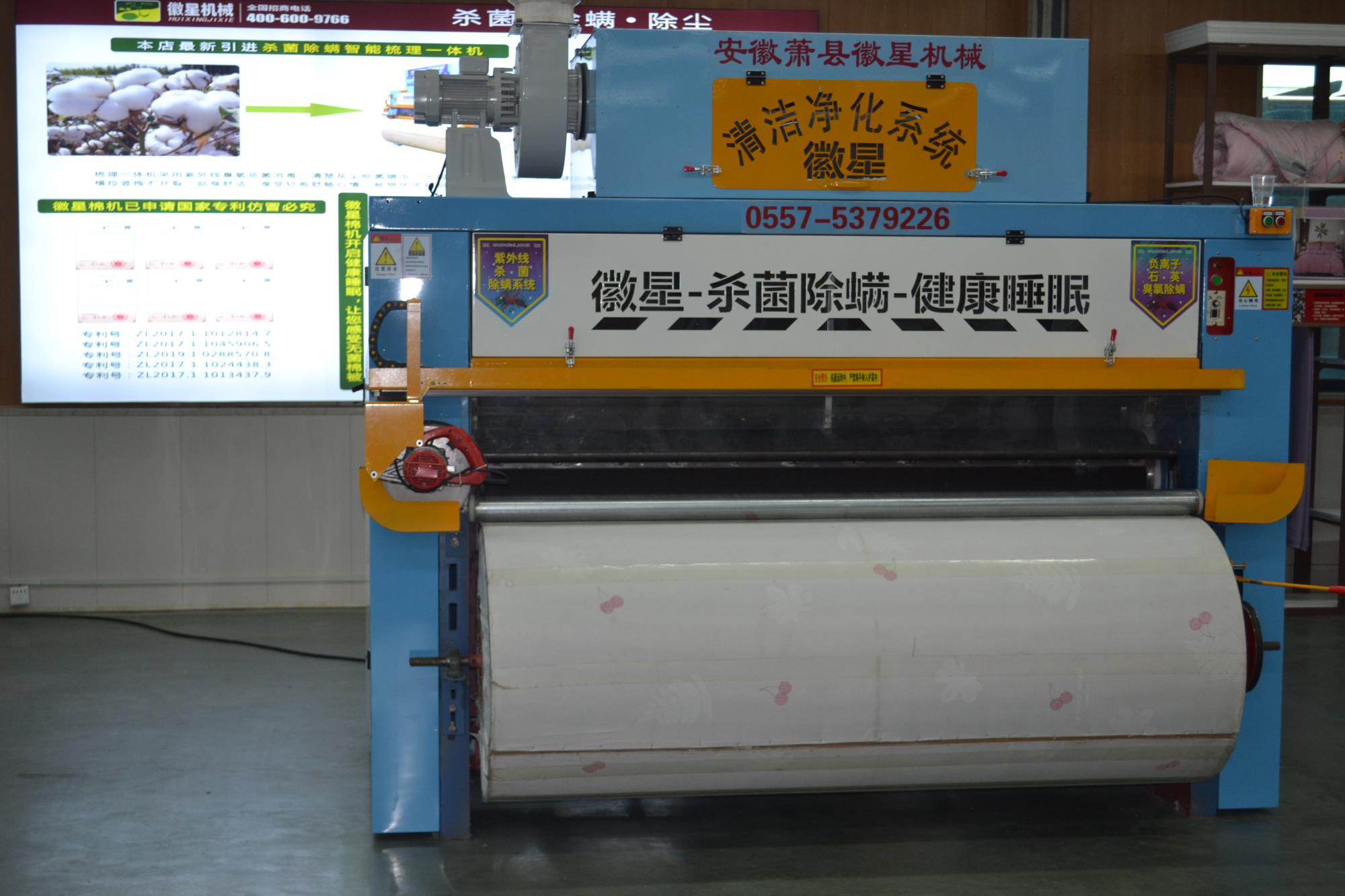 產品簡介:全自動彈花機是徽星彈花機的專利產品梳棉花機器,,一次成型全自動梳棉花機器,寬度任意調節,大小被子任意做,而且是封閉吸塵梳棉機,可用照明電,3千瓦,非常適合沒有三相電的客戶朋友。