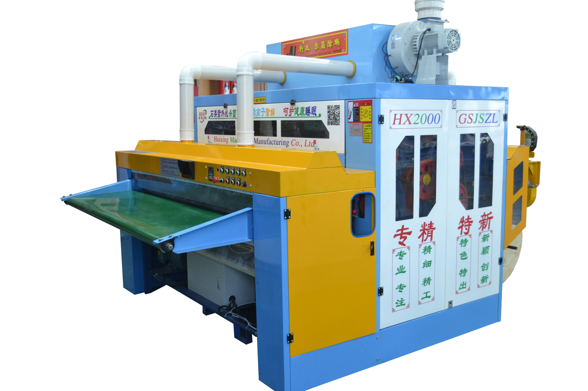 產品簡介:開機流程簡單易學,分體控制柜,按鍵一鍵啟動,雙側羅拉,采用全封閉設計,防纏繞,不塞棉,不藏灰,低噪音,錫林工作輥采用上市公司原材,該機可隔機安全觀察,開松四羅拉不抽花,雙雜亂。具有棉胎裁切、自動涮洗除塵、對多種棉被填充物的梳理等功能。